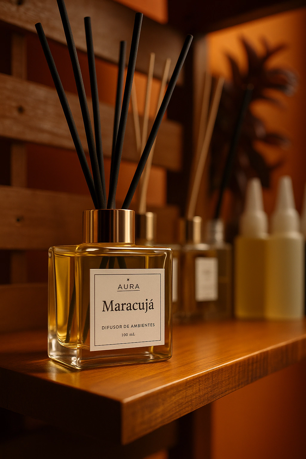 Eleve a sofisticação do seu ambiente com o nosso Difusor de Aromas Maracujá. Acompanha elegantes varetas de fibra de algodão que, ao contrário das de bambu, não necessitam de serem viradas para manter a difusão constante e na medida certa. A embalagem de vidro em formato de cubo acrescenta um toque de elegância e refinamento ao seu espaço, tornando-o mais acolhedor e sofisticado.